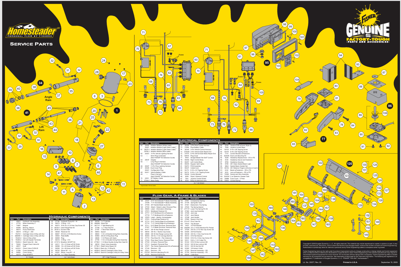 FISHER HOMESTEADER SNOWPLOWS PRINTABLE 11 X 17" PARTS POSTER - FACTORY GENUINE REPLACEMENT PARTS - SOME PARTS ARE NOW OBSOLETE