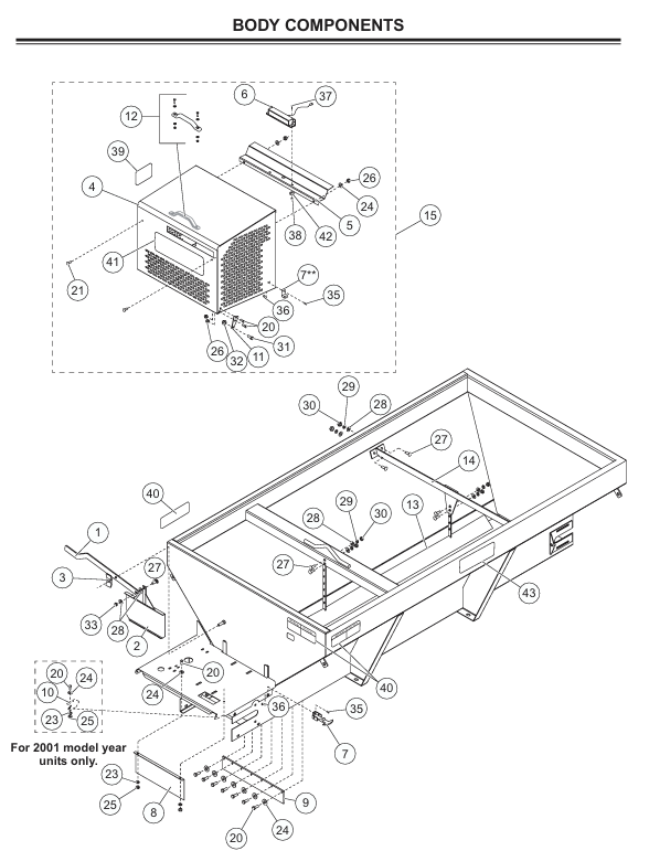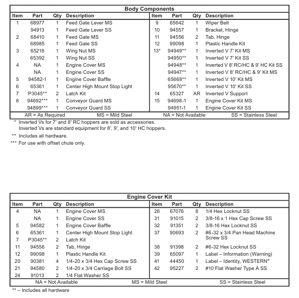 Explore our collection of Western Ice Breaker Hopper Body Components, designed for reliable performance and durability. These factory genuine replacement parts are essential for maintaining your hopper spreaders, ensuring optimal functionality during winter weather conditions. With components specifically made for Fisher, Snowex, and Western spreaders, you can trust in the quality and fit of our products. Our parts list features essential items such as rubber latch assemblies and chute handle kits, tailored to enhance your ice and snow management experience. Keep your spreader in peak condition and tackle winter challenges with confidence.