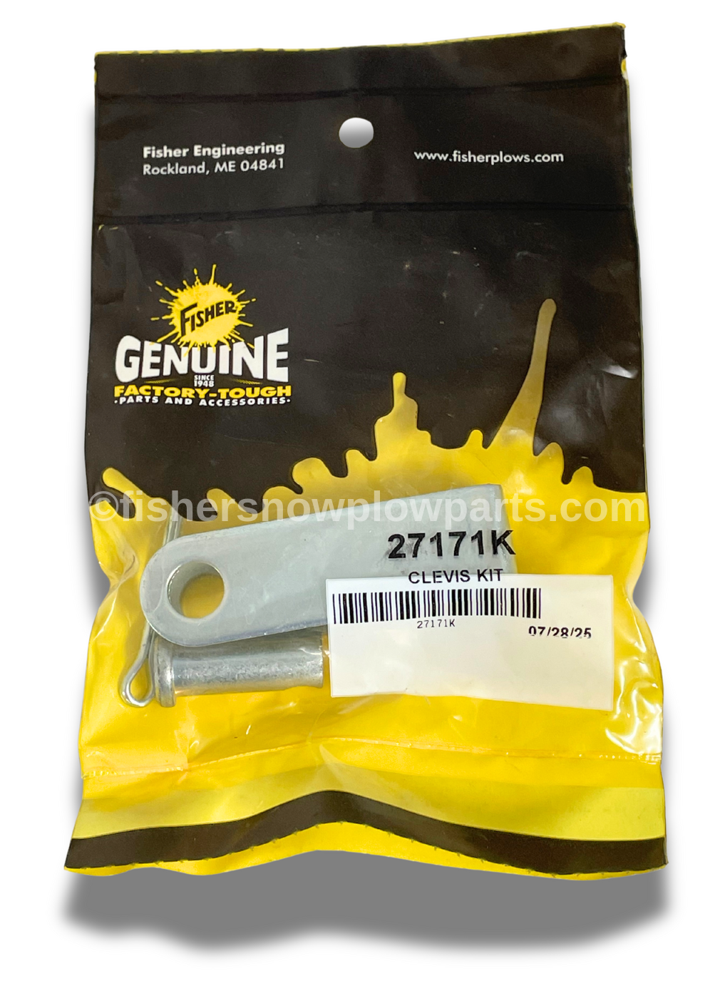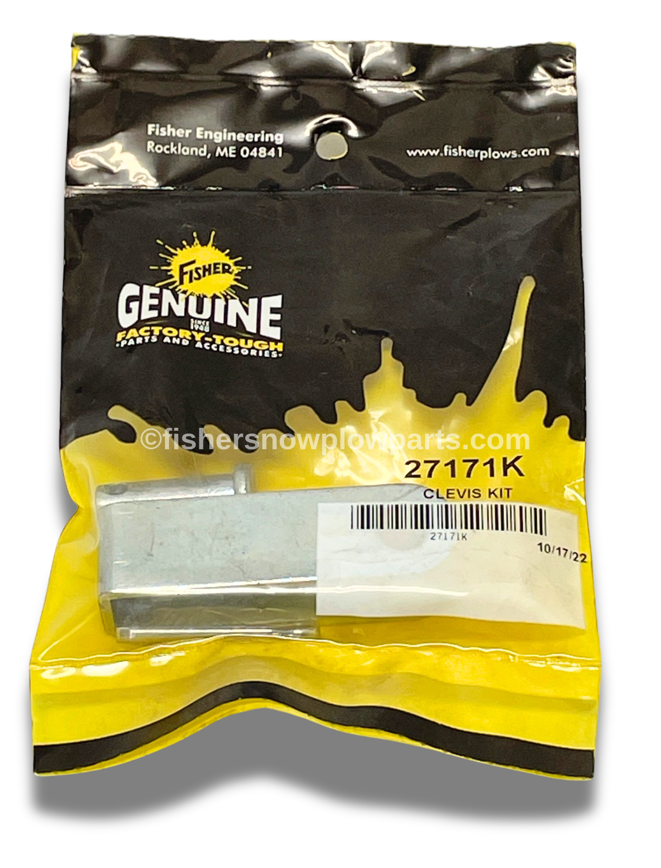 The 27171K - "FISHER SNOW PLOWS FACTORY GENUINE REPLACEMENT PART - CLEVIS KIT - MINUTE MOUNT 2" is an essential component designed for all Minute Mount 2 plows, ensuring a perfect fit and optimal performance. Crafted with precision and durability in mind, this clevis kit serves as a reliable choice for those looking to maintain their snow plow’s efficiency, particularly during the demanding winter months.