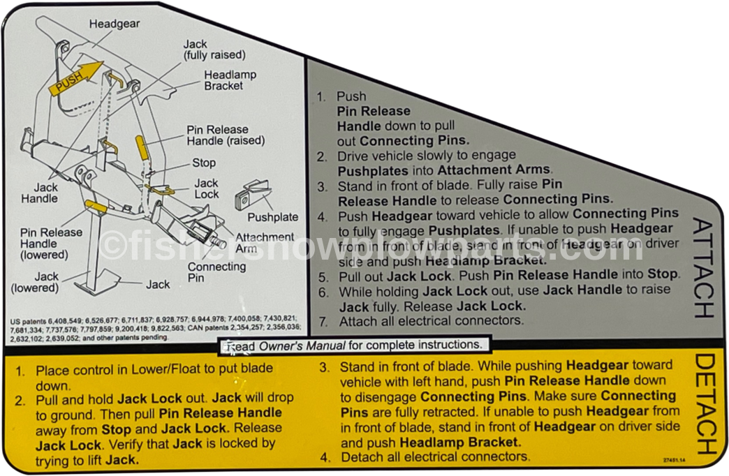 Crafted from durable materials, the 27451 label ensures longevity, allowing you to maintain the snowplow's functionality year after year. This replacement label is not just a simple sticker—it's a vital part of keeping your snow removal equipment operating safely and effectively. Its clear and concise markings provide critical information for connecting and disconnecting your snowplow quickly, ensuring that you can efficiently tackle snow-covered driveways and roadways without any hassle.
