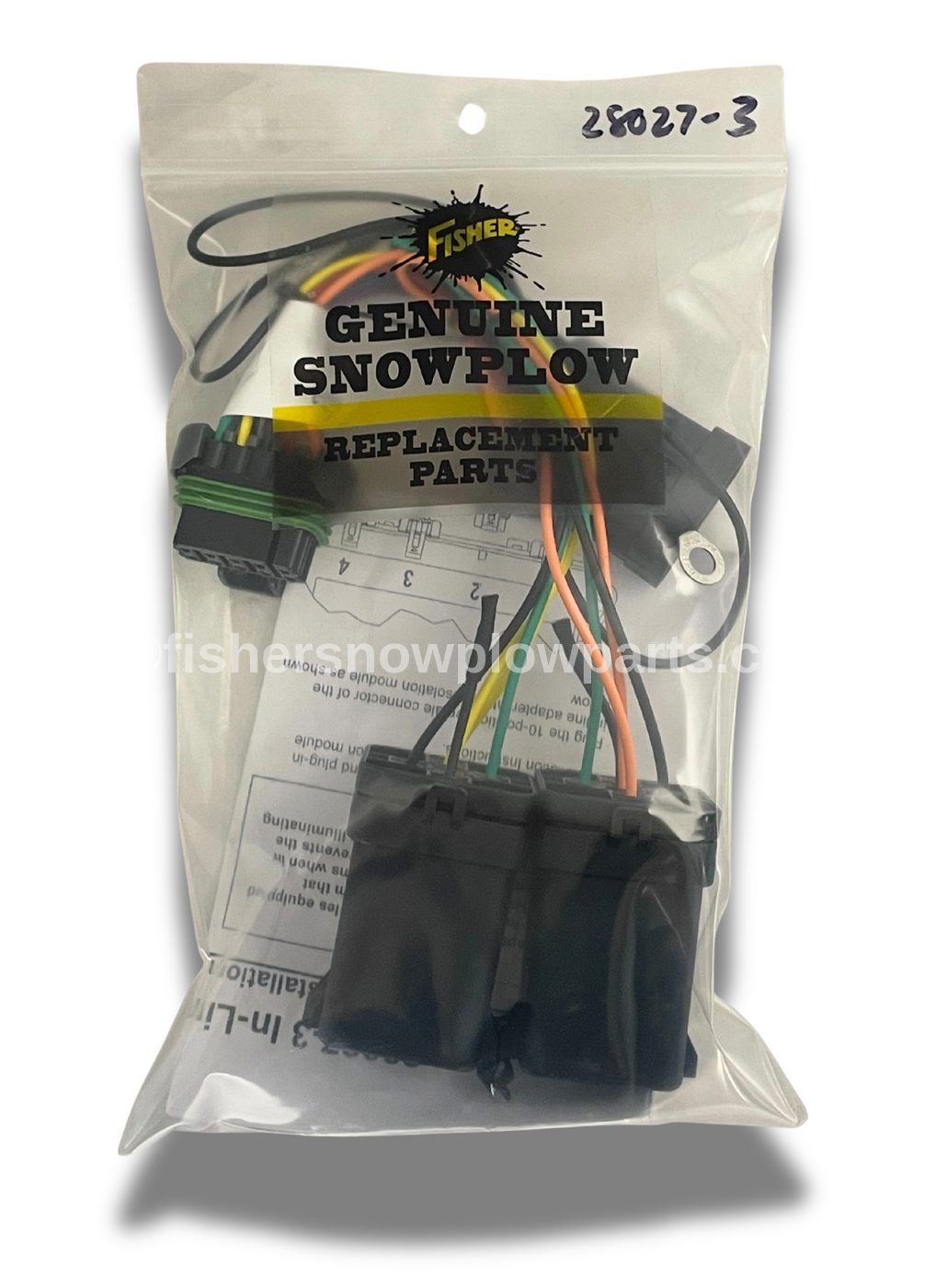 The 28027-3 Adapter Kit is an essential genuine replacement part designed for Fisher, Western, and SnowEx snowplows, ensuring optimal performance and reliability during winter operations. This meticulously engineered module-to-harness adapter kit seamlessly connects the snowplow's lighting electrical system.