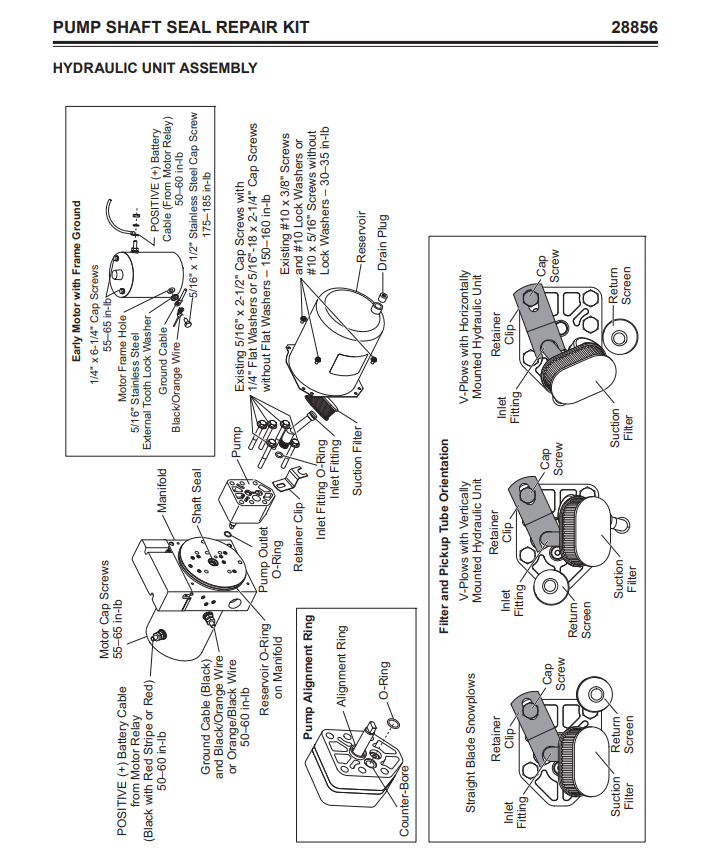 Constructed with high-quality materials, the 28856 kit ensures reliable and effective repairs, providing peace of mind when facing harsh winter conditions. This kit includes all necessary components to replace worn or damaged pump shaft seals, which can often be the root cause of leaks and operational issues. Whether you’re a professional contractor or a dedicated DIY enthusiast, this repair kit simplifies the process of maintaining your snowplow.
