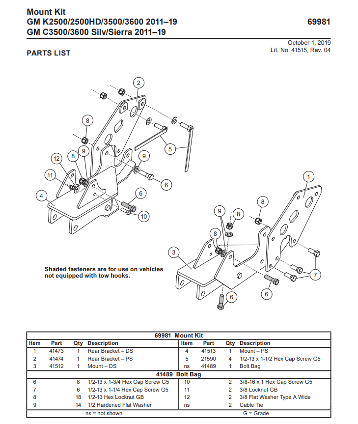 41489 - FISHER - WESTERN & SNOWEX SNOWPLOWS Factory Genuine Replacement Part- BOLT BAG 7192 / 69981