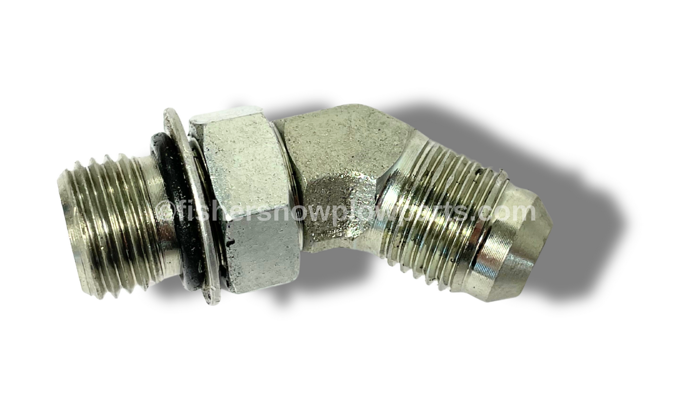 Enhance the efficiency of your snow plowing with the 57877 - Fisher XRS - Western Prodigy Skid Steer Snowplows factory genuine replacement part. This special 45° elbow fitting is designed for durability and seamless compatibility with your equipment.