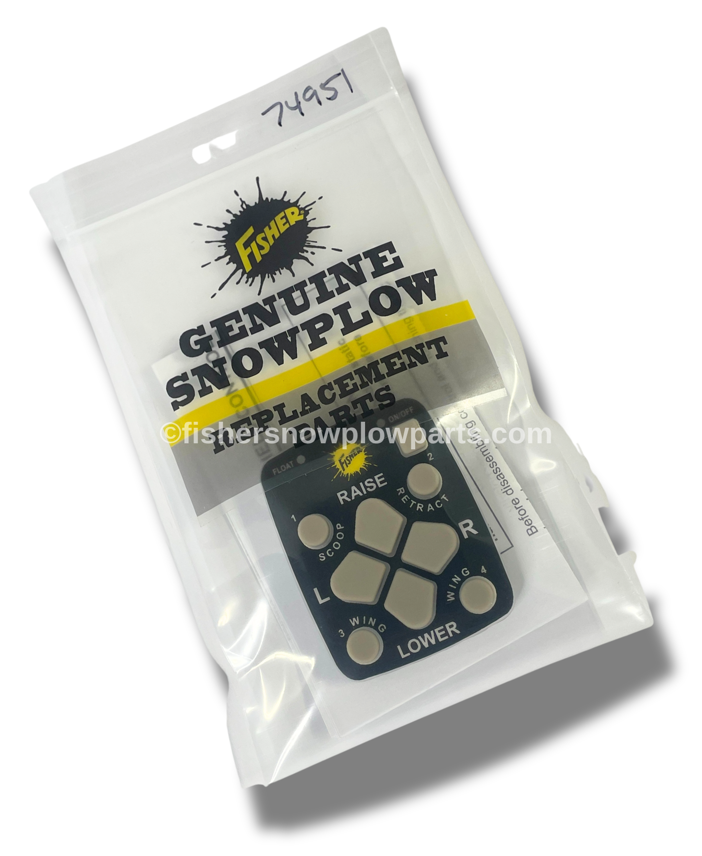 The 74951 Gray Keypad serves as a genuine replacement part for the 85100 Fishstick hand-held control used in Fisher snow plows. Designed with precision and high-quality materials, this keypad is essential for ensuring the seamless operation of your snow plow equipment during those harsh winter months.