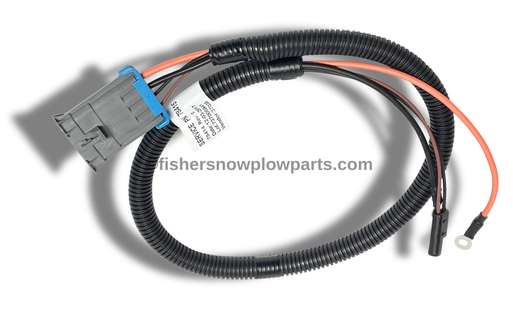 The 78415 Fisher - Western Spreaders Factory Genuine Replacement Part is an essential component for maintaining the efficiency and reliability of your snow and ice management equipment. Specifically designed for use with the FleetFlex Wired Polycaster and Western Tornado models, this cable assembly offers a seamless connection from the spreader module to the chute spinner.