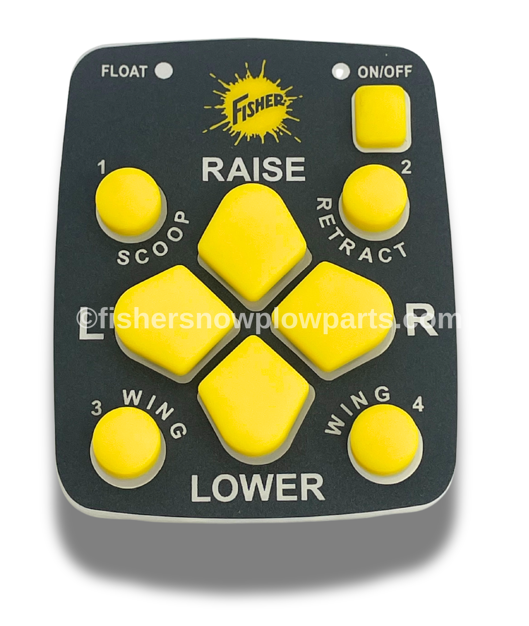 The assembly is equipped with both 4-pin square and 10-pin round connectors, allowing for easy installation and a secure connection to your snowplow's system. It is important to note that this product does not include an electric PC board, so be sure to keep your existing board when upgrading your keypad. The reliable, factory-genuine design maintains the high standards Fisher is renowned for, ensuring your equipment runs smoothly season after season.