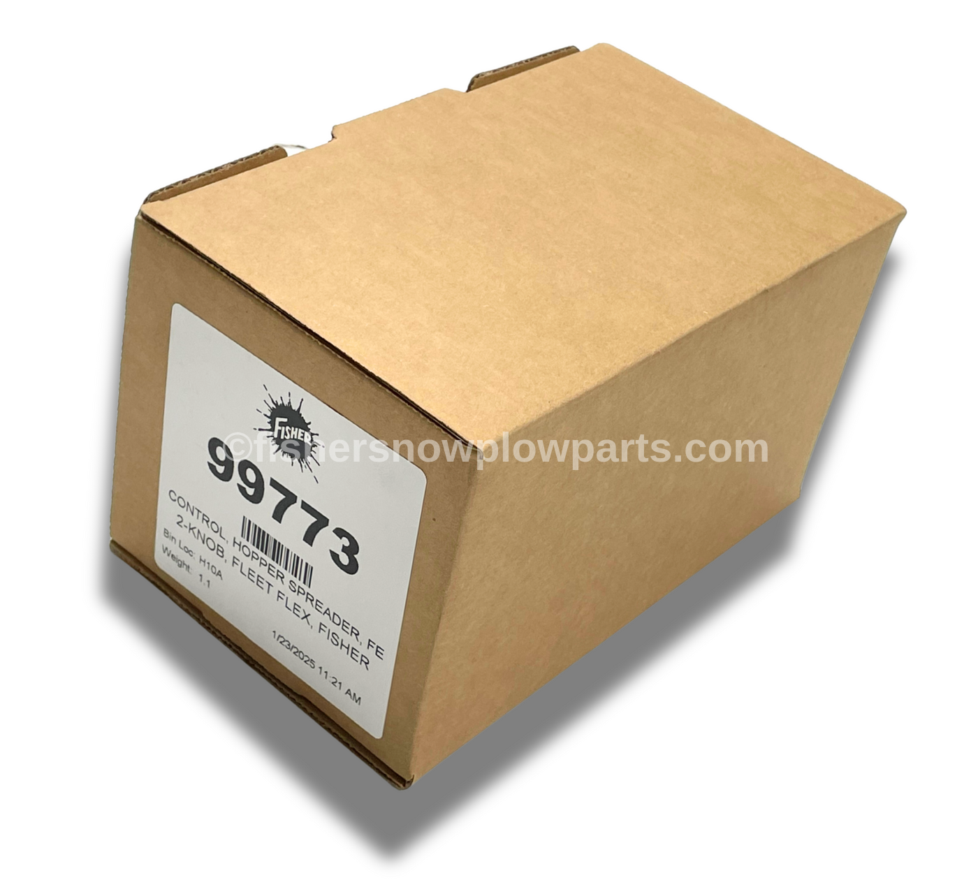 The 99773 - Fisher Tempest, Tempest Poly, Steelcaster, Fleetflex Polycaster Spreader Genuine Replacement Part is designed specifically for users seeking reliable and efficient control over their snow and ice management equipment. This control component features a two-knob design that allows for precision adjustments, ensuring optimal performance during winter weather conditions.